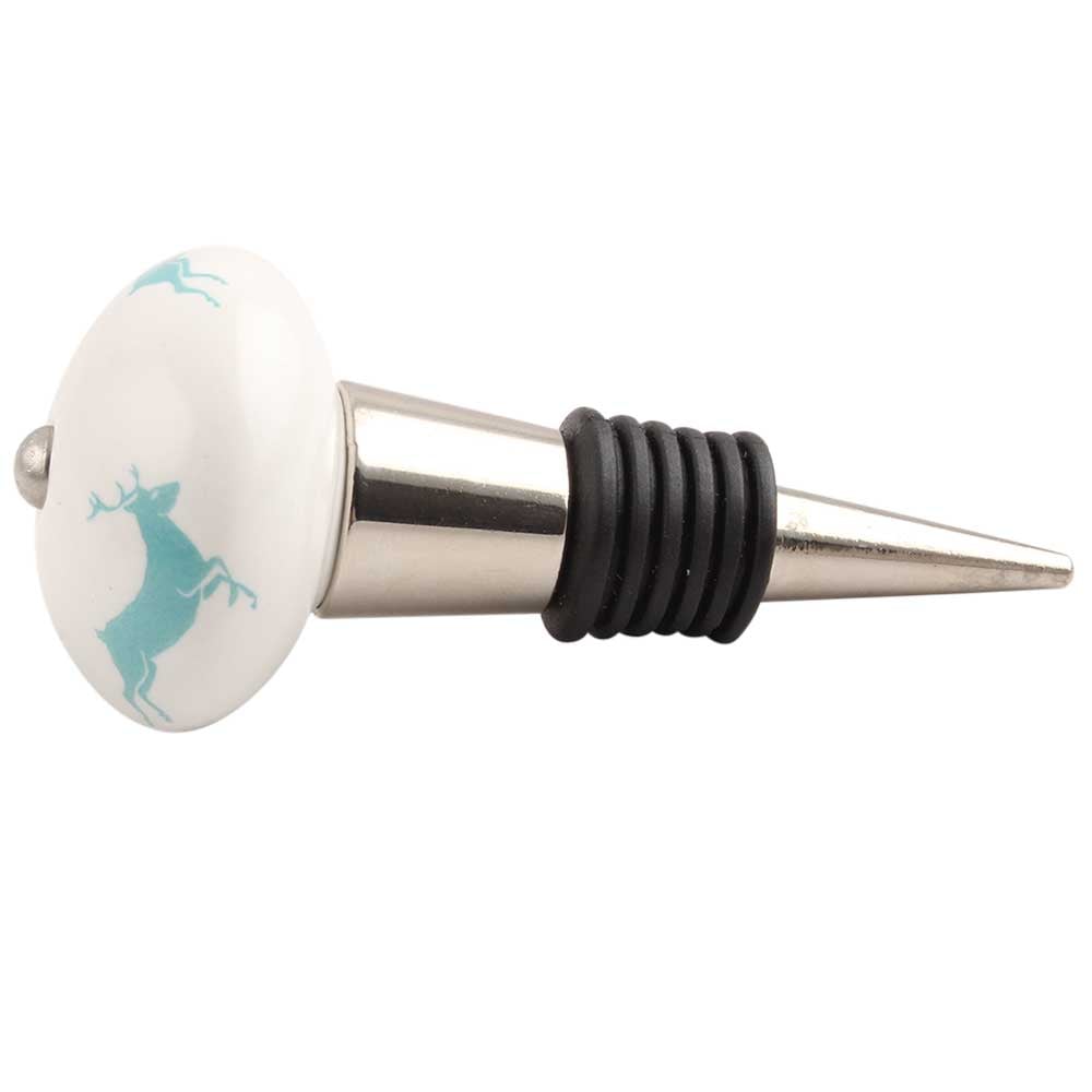 Sea Green Runing Rein Deer Pattern Ceramic Wine Stopper