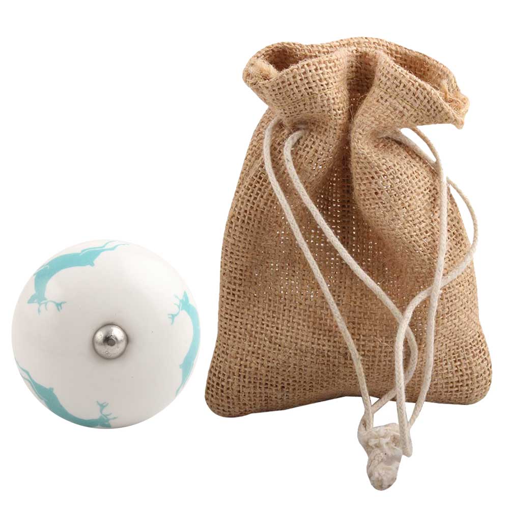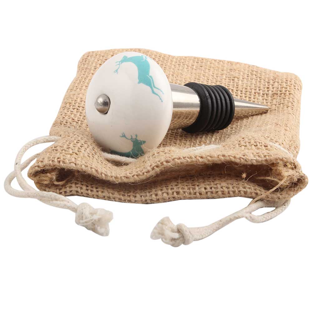 Sea Green Runing Rein Deer Pattern Ceramic Wine Stopper.zinc alloy wine bottle stopper with attractive Jute Bag Packaging.