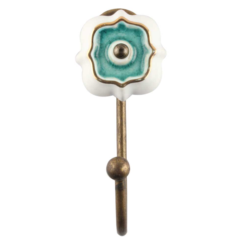 Elevate your walls with the timeless charm of the Sea Green Solid Gold Line Ceramic Hook in Antique Fitting. This beautifully handcrafted hook combines glossy ceramic with antique brass accents, blending vintage sophistication with a fresh pop of color. The elegant sea green finish is accented by delicate gold lining, creating a small but powerful design statement. Ideal for both function and decor, this hook brings a refined touch to any space—be it a cozy hallway, elegant bathroom, or creative studio.
