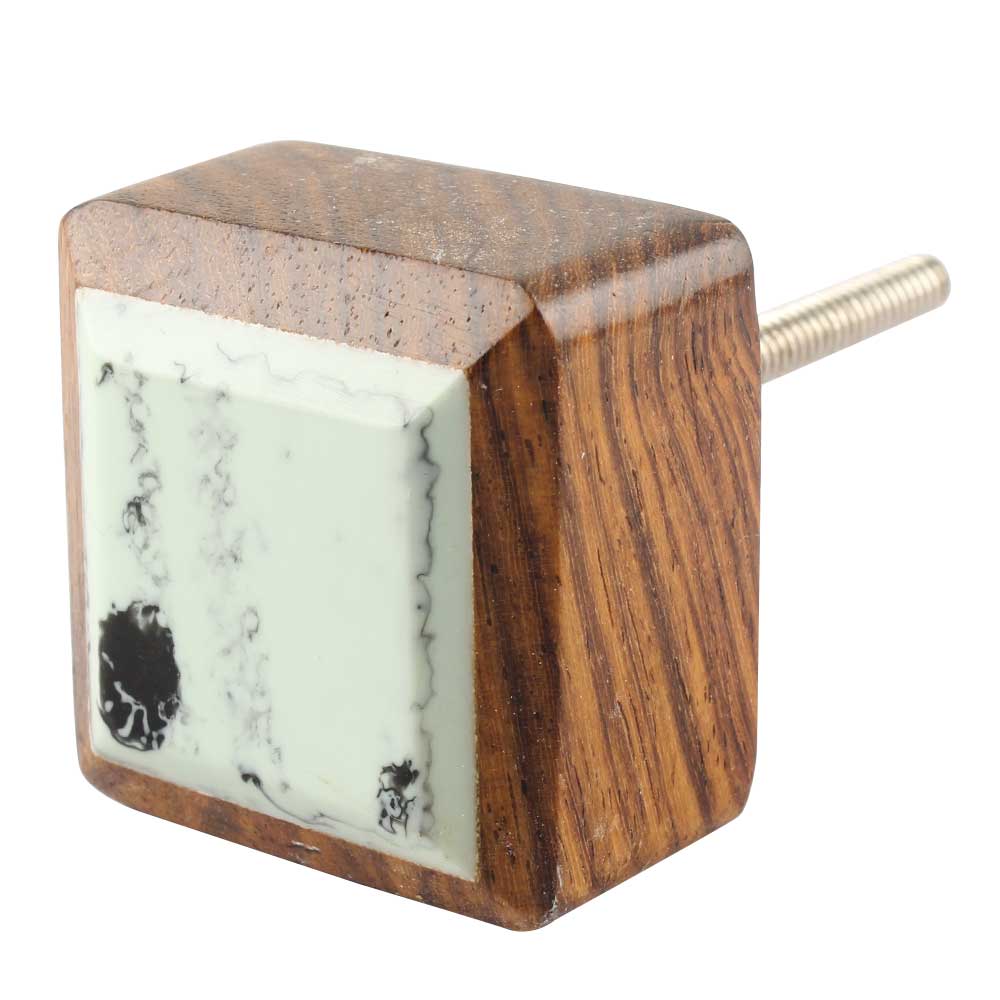 Sea Green Square Wooden And Resin Cabinet Knob