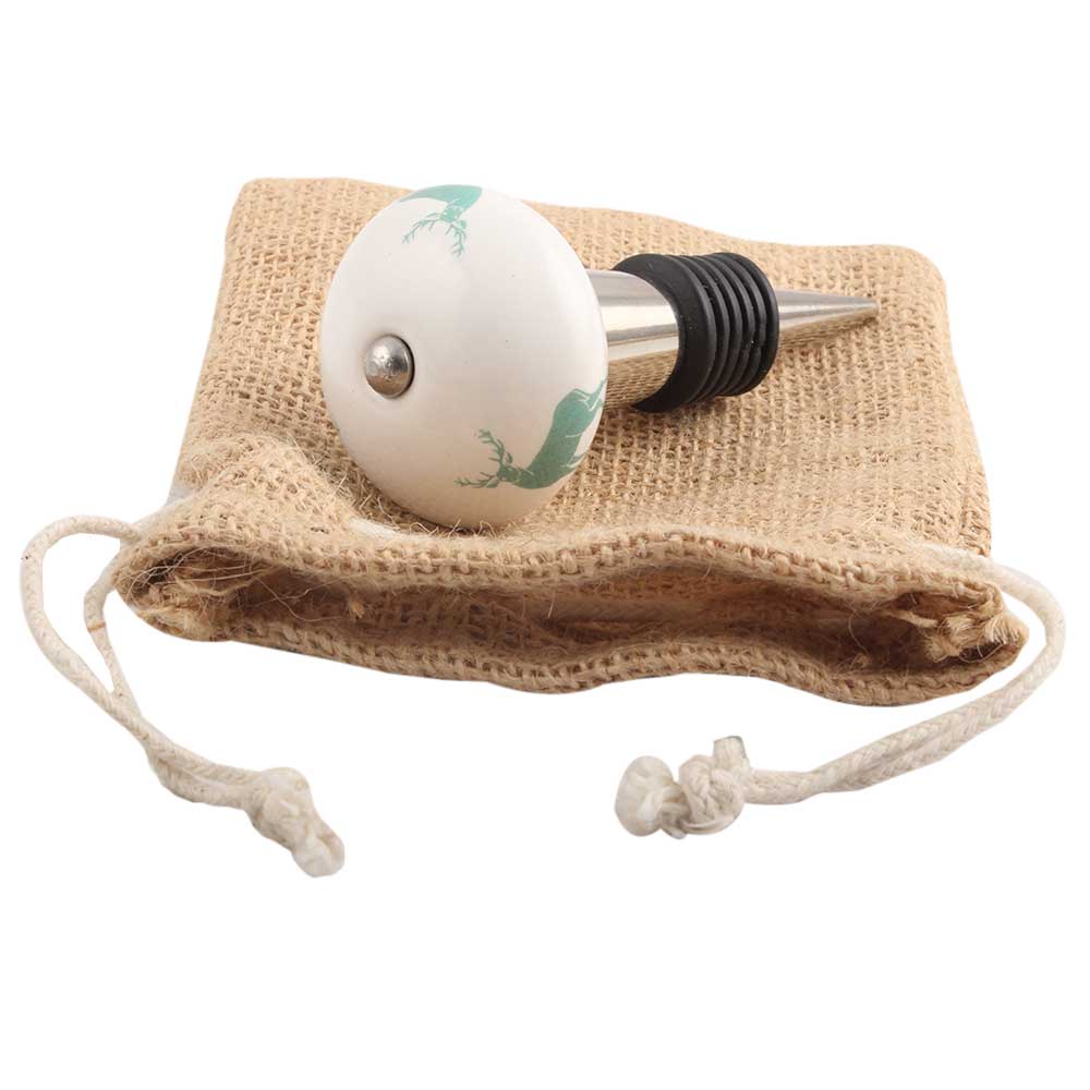 Sea Green Standing Rein Deer Pattern Ceramic Wine Stopper.zinc alloy wine bottle stopper with attractive Jute Bag Packaging.