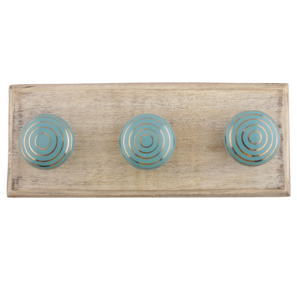 Sea Green Striped Ceramic Wooden Hooks . A Perfect Complement to the Soft Tone of the Wood are these White Traditional Hat and Coat Hook Made of Genuine Porcelain and Brass. It can be used to Hang Jewelry, Leashes, Towels, Scarves, Light Weight Sweaters, Caps etc.