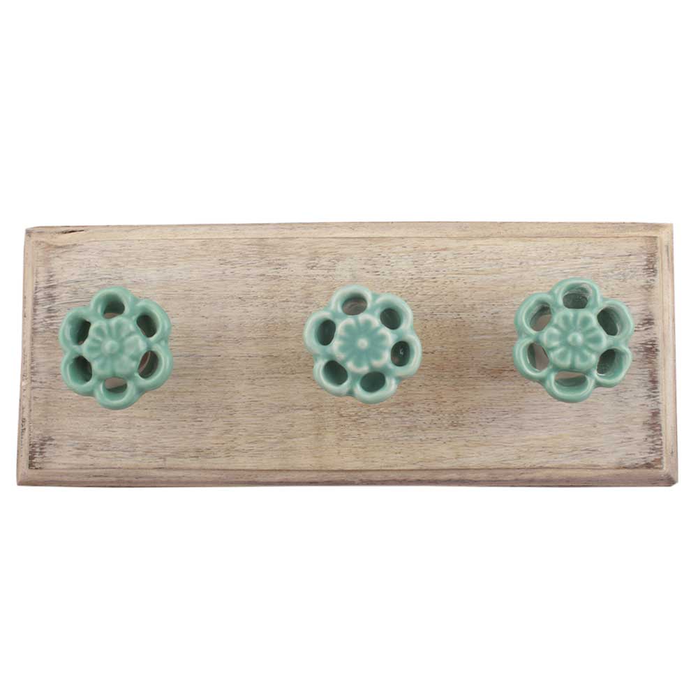Sea Green Tiny Flower Ceramic Wooden Hooks Online