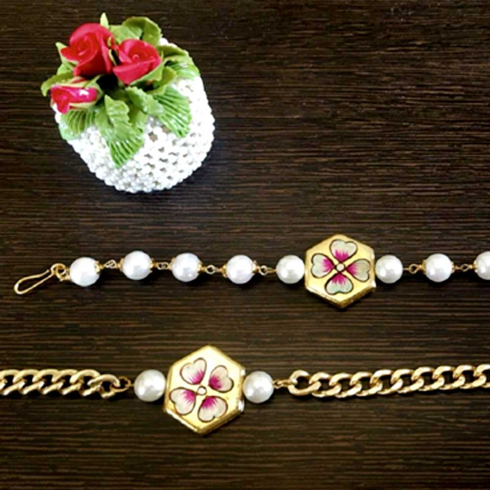 Rakhi + Lumba set - Hand painted gold polish center piece with premium metal chain and ganthan.
