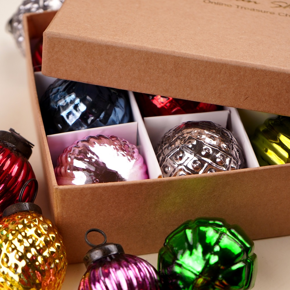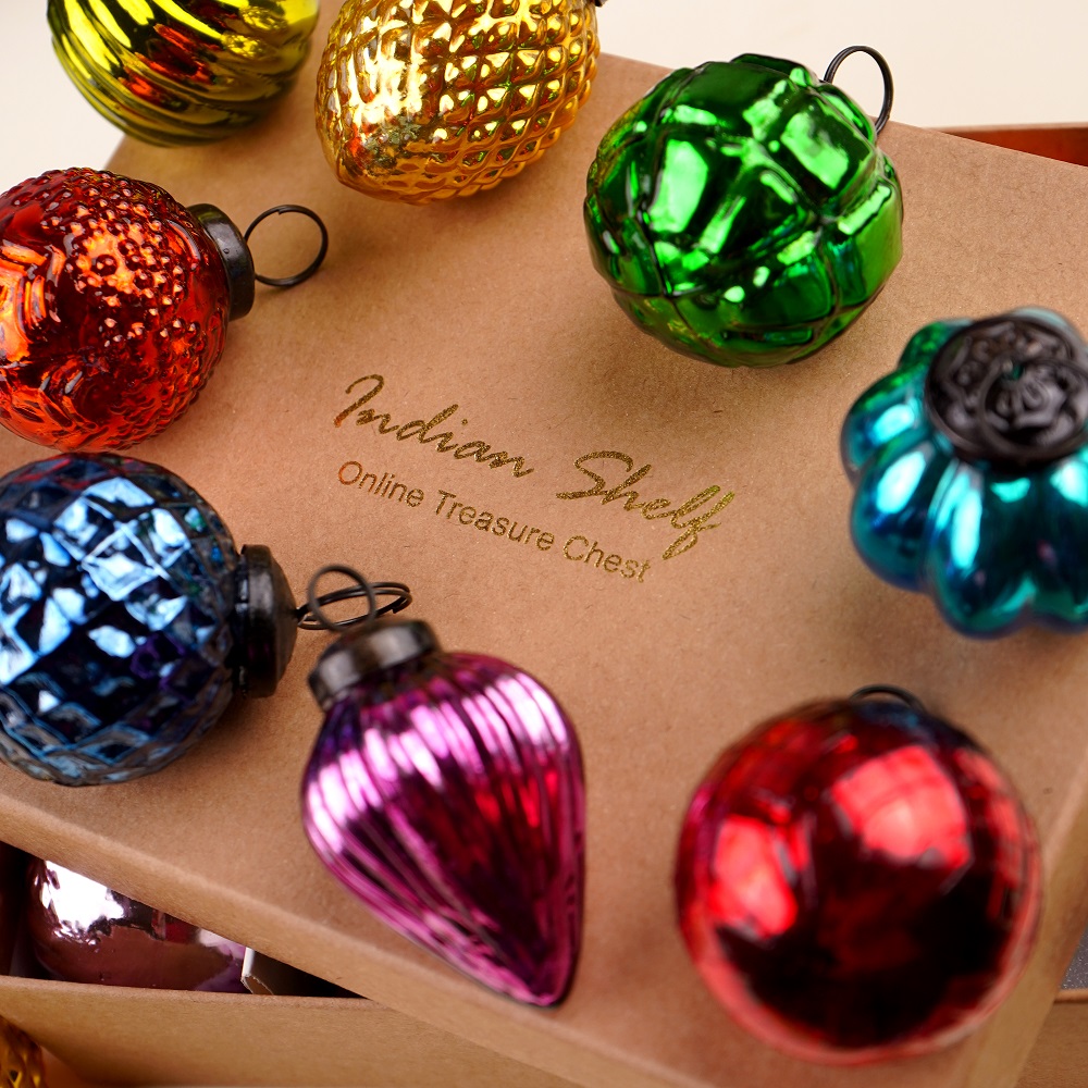 Indianshelf.com for bulk/wholesale orders.Indianshelf.us for personal purchases.The Glass Multicolor Christmas Ornaments for Tree Decoration Set of 12 is the perfect way to brighten up your tree with a vibrant and festive flair. Featuring a beautiful array of colorful glass ornaments, this set will bring joy and cheer to your home during the holiday season. The stunning, reflective surface of each ornament catches the light beautifully, creating a warm, glowing atmosphere that will make your tree shine with holiday spirit.