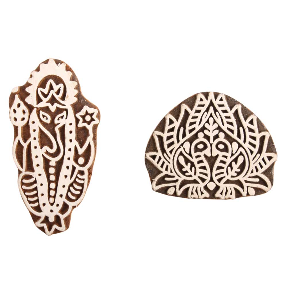 Set of 2 Piece New Mix Wooden Printing Block. Ideal for Using on Fabric, Paper, Canvas, etc. These Blocks can be use to Print with Oil Colors, Fabric Colors, Water Colors, Acrylic Colors and Vegetable Colors.