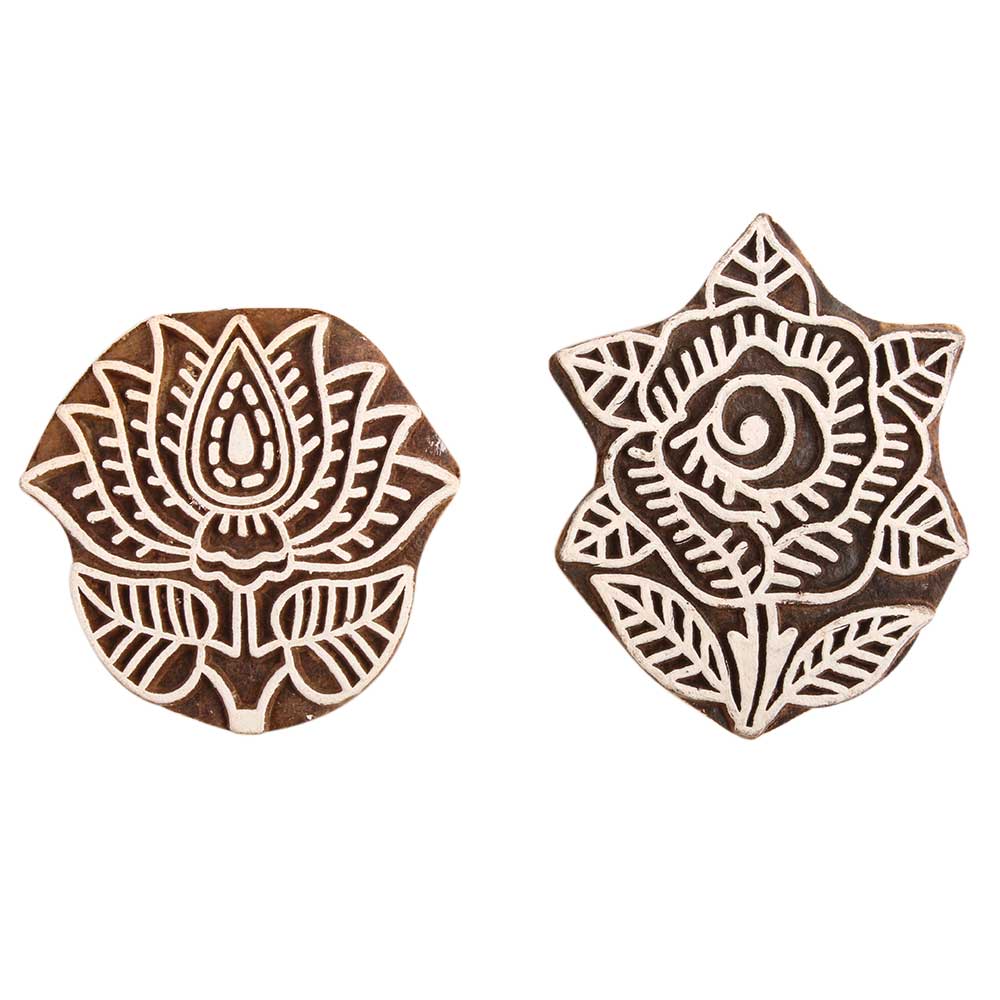 Set of 2 Piece New Mix Wooden Printing Block. Ideal for Using on Fabric, Paper, Canvas, etc. These Blocks can be use to Print with Oil Colors, Fabric Colors, Water Colors, Acrylic Colors and Vegetable Colors.