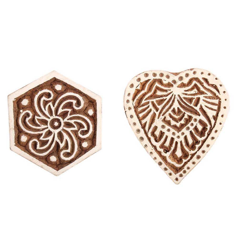 Set of 2 Piece New Mix Wooden Printing Block. Ideal for Using on Fabric, Paper, Canvas, etc. These Blocks can be use to Print with Oil Colors, Fabric Colors, Water Colors, Acrylic Colors and Vegetable Colors.