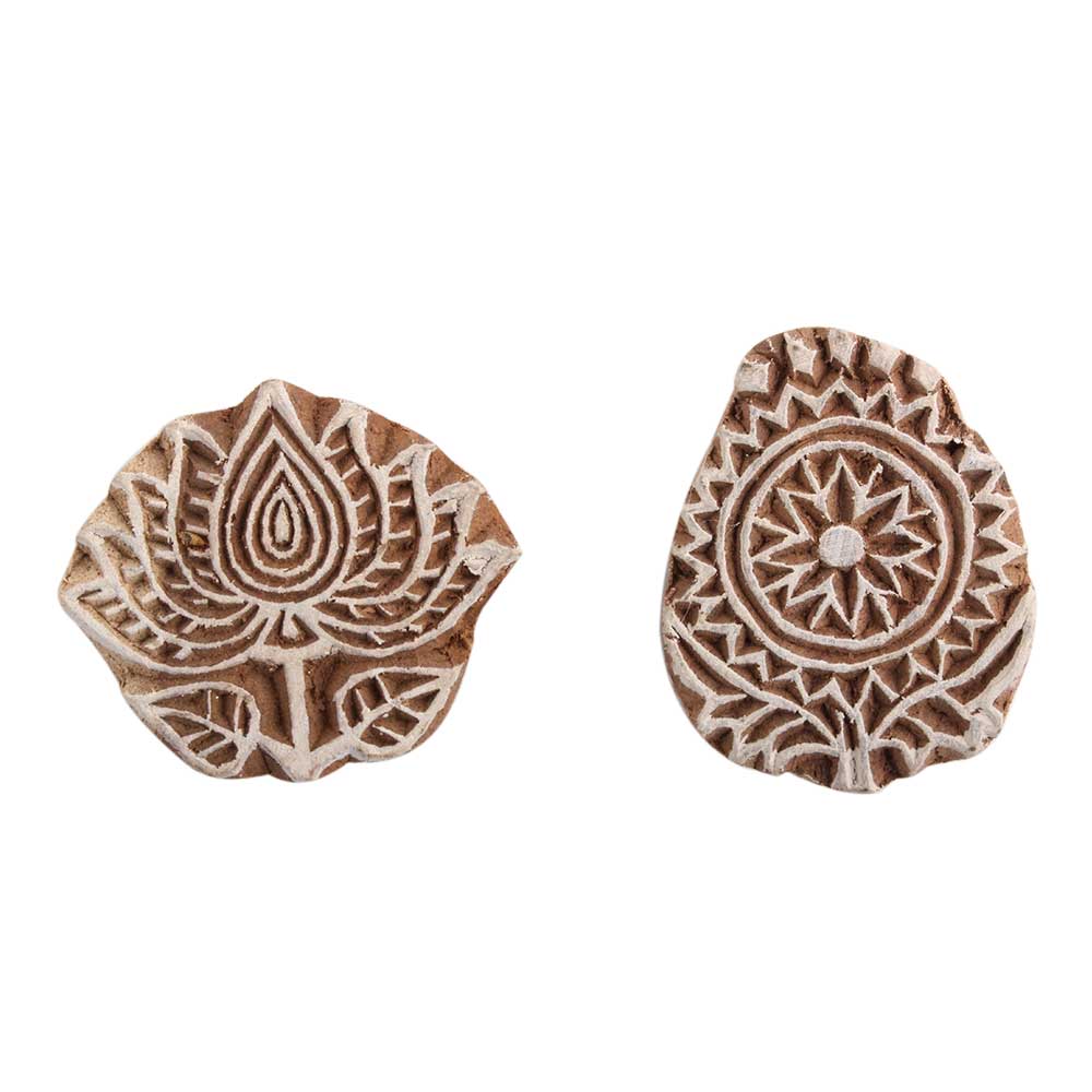 Set of 2 Piece New Mix Wooden Printing Block. Ideal for Using on Fabric, Paper, Canvas, etc. These Blocks can be use to Print with Oil Colors, Fabric Colors, Water Colors, Acrylic Colors and Vegetable Colors.