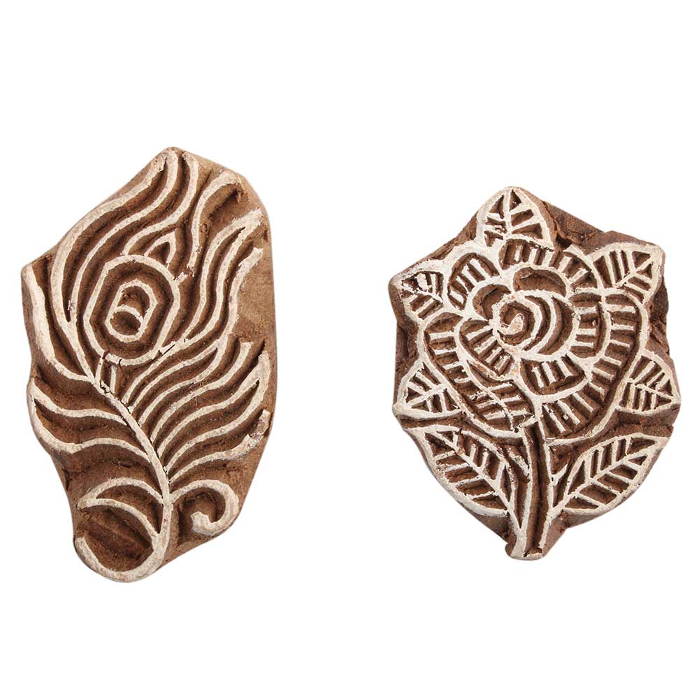 Set of 2 Piece New Mix Wooden Printing Block. Ideal for use on Fabric, Paper, Canvas, etc. These Blocks can be use to Print with Oil Colors, Fabric Colors, Water Colors, Acrylic Colors and Vegetable Colors.