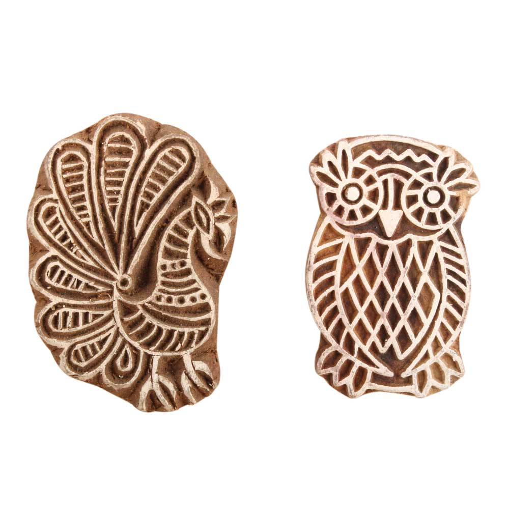 Set of 2 Piece New Mix Wooden Printing Block. Ideal for use on Fabric, Paper, Canvas, etc. These Blocks can be use to Print with Oil Colors, Fabric Colors, Water Colors, Acrylic Colors and Vegetable Colors.