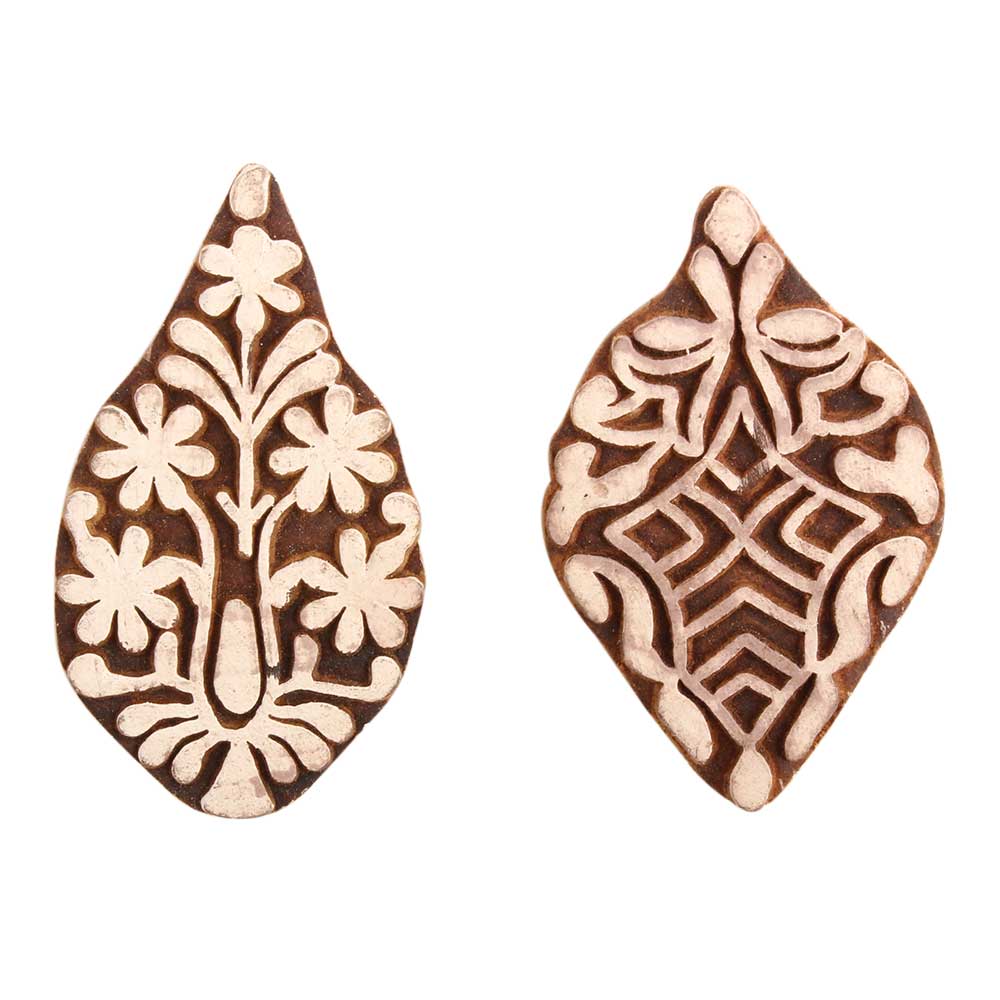 Set of 2 Piece New Mix Wooden Printing Block. Ideal for use on Fabric, Paper, Canvas, etc. These Blocks can be use to Print with Oil Colors, Fabric Colors, Water Colors, Acrylic Colors and Vegetable Colors.