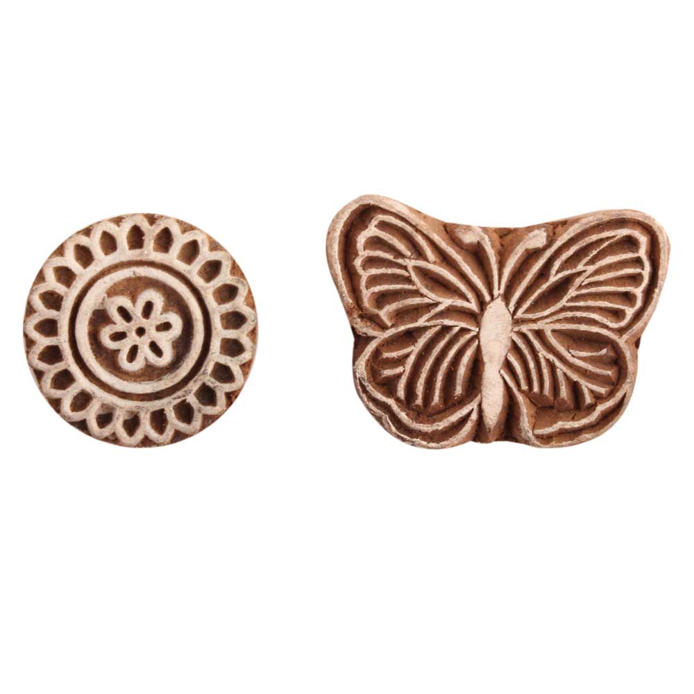 Set of 2 Piece New Mix Wooden Printing Block. Ideal for use on Fabric, Paper, Canvas, etc. These Blocks can be use to Print with Oil Colors, Fabric Colors, Water Colors, Acrylic Colors and Vegetable Colors.