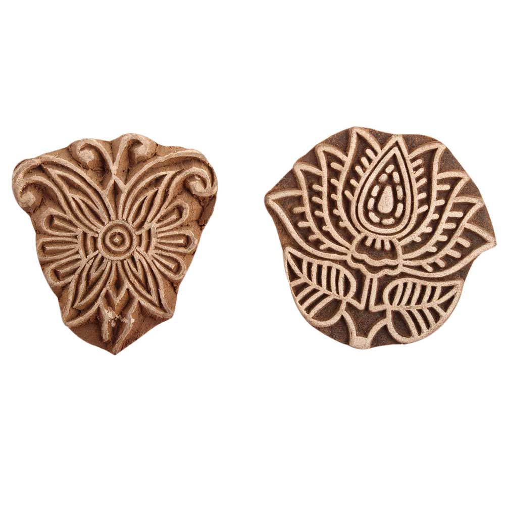 Set of 2 Piece New Mix Wooden Printing Block. Ideal for use on Fabric, Paper, Canvas, etc. These Blocks can be use to Print with Oil Colors, Fabric Colors, Water Colors, Acrylic Colors and Vegetable Colors.