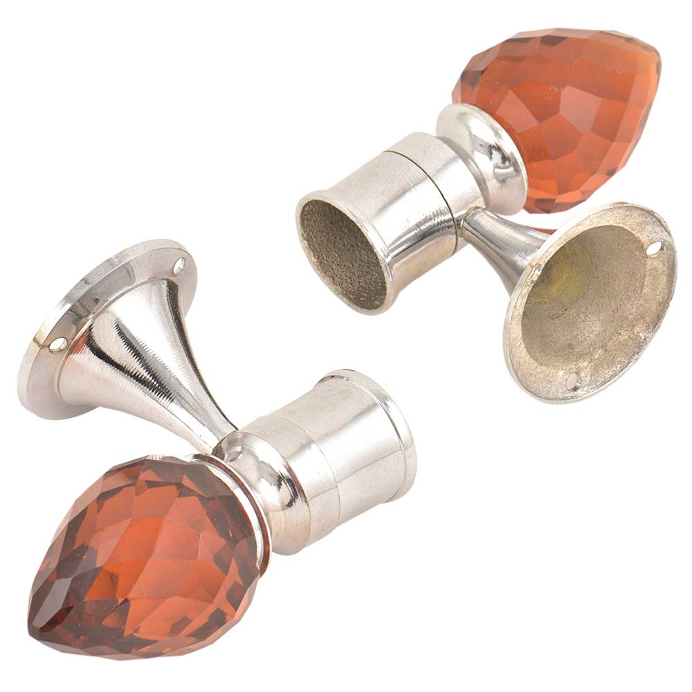 • Set Of 2 Red Teardrop Crystal Curtain Pole Finials With Silver Brass Bracket