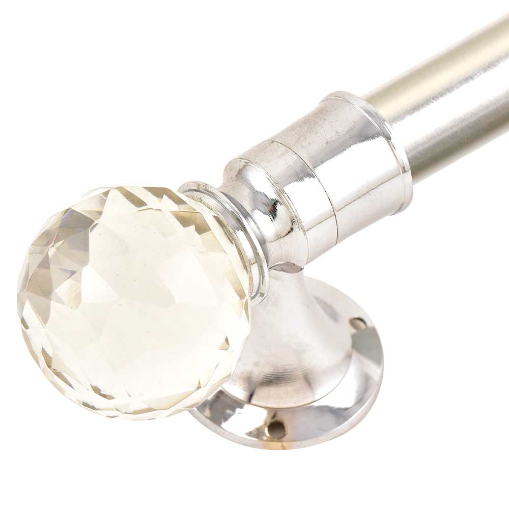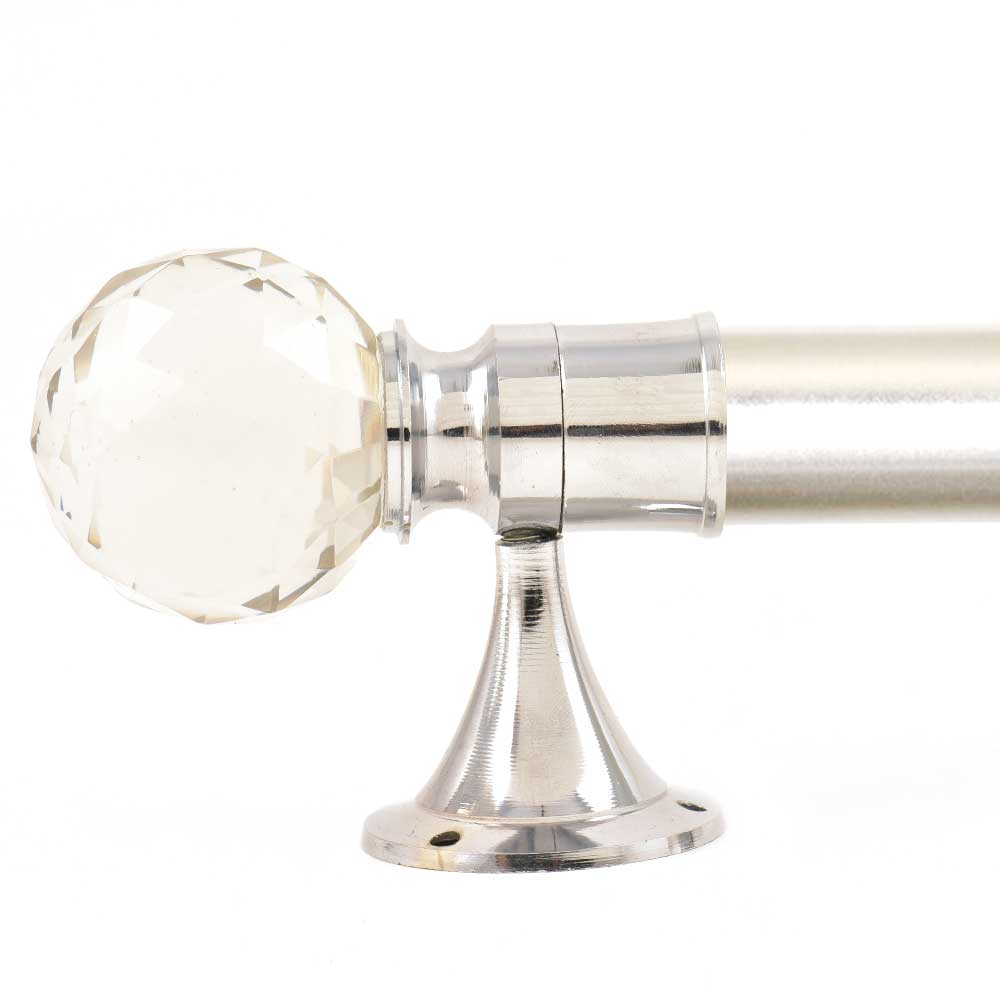 • Set Of 2 Transparent Globe Crystal Curtain Pole Finials With Silver Brass Bracket