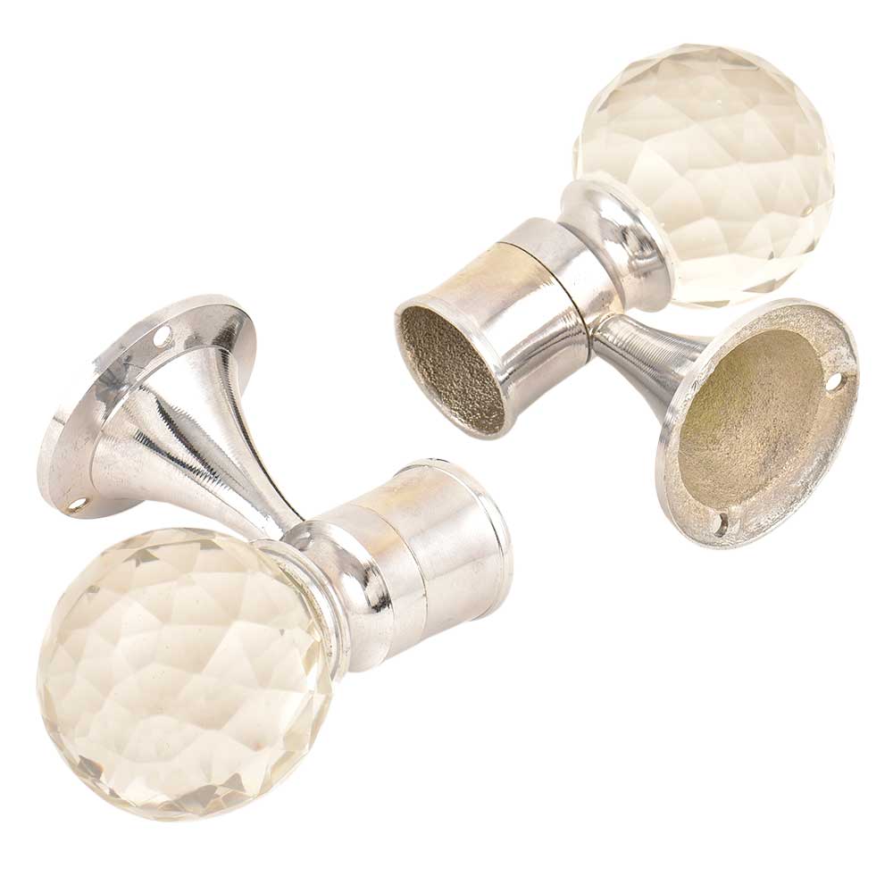 Set Of 2 Transparent Globe Crystal Curtain Pole Finials With Silver Brass Bracket