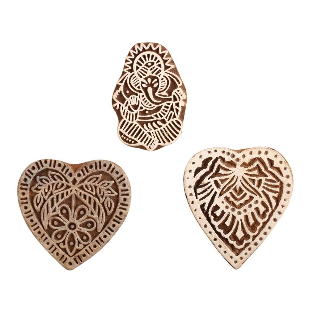 Set of 3 Piece New Mix Wooden Printing Block. Ideal for use on Fabric, Paper, Canvas, etc. These Blocks can be use to Print with Oil Colors, Fabric Colors, Water Colors, Acrylic Colors and Vegetable Colors.