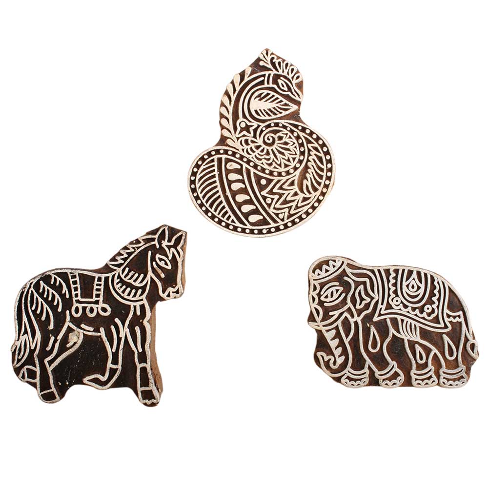 Set of 3 Piece New Mix Wooden Printing Block. Ideal for use on Fabric, Paper, Canvas, etc. These Blocks can be use to Print with Oil Colors, Fabric Colors, Water Colors, Acrylic Colors and Vegetable Colors.