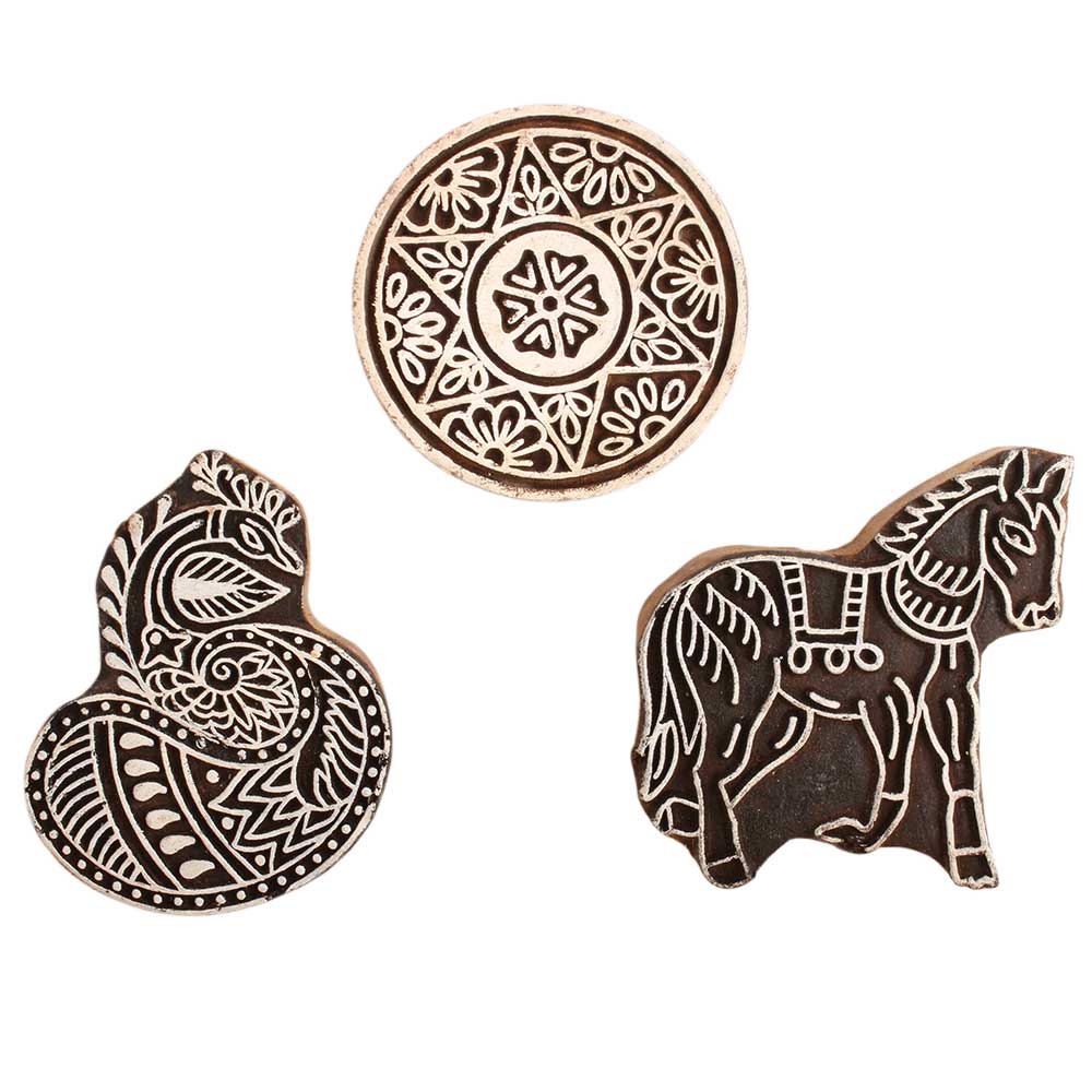 Set of 3 Piece New Mix Wooden Printing Block. Ideal for use on Fabric, Paper, Canvas, etc. These Blocks can be use to Print with Oil Colors, Fabric Colors, Water Colors, Acrylic Colors and Vegetable Colors.