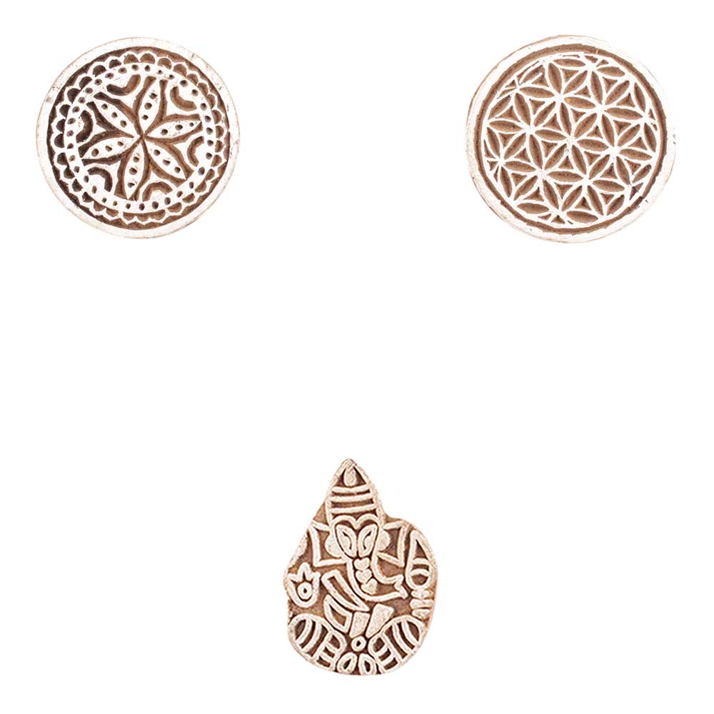 Set of 3 Piece New Mix Wooden Printing Block. Ideal for use on Fabric, Paper, Canvas, etc. These Blocks can be use to Print with Oil Colors, Fabric Colors, Water Colors, Acrylic Colors and Vegetable Colors.