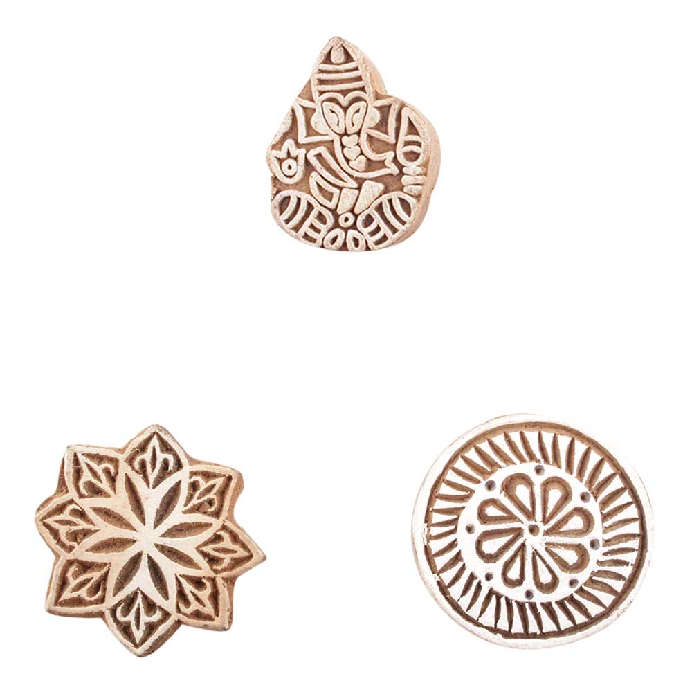Set of 3 Piece New Mix Wooden Printing Block. Ideal for use on Fabric, Paper, Canvas, etc. These Blocks can be use to Print with Oil Colors, Fabric Colors, Water Colors, Acrylic Colors and Vegetable Colors.