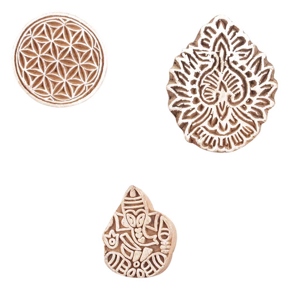 Set of 3 Piece New Mix Wooden Printing Block. Ideal for use on Fabric, Paper, Canvas, etc. These Blocks can be use to Print with Oil Colors, Fabric Colors, Water Colors, Acrylic Colors and Vegetable Colors.
