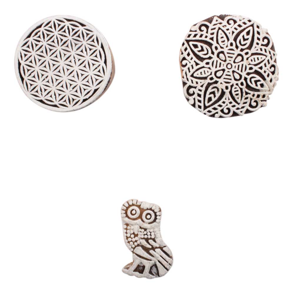 Set of 3 Piece New Mix Wooden Printing Block. Ideal for use on Fabric, Paper, Canvas, etc. These Blocks can be use to Print with Oil Colors, Fabric Colors, Water Colors, Acrylic Colors and Vegetable Colors.