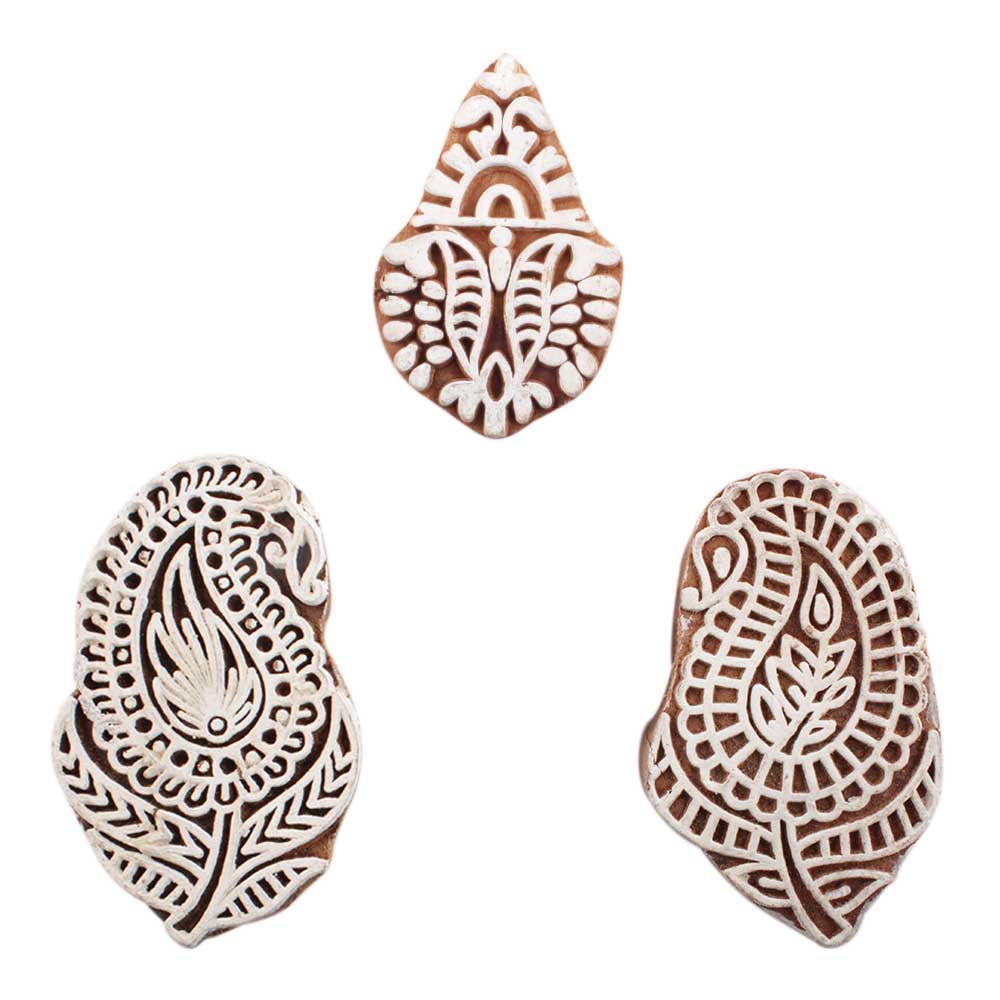 Set of 3 Piece New Mix Wooden Printing Block. Ideal for use on Fabric, Paper, Canvas, etc. These Blocks can be use to Print with Oil Colors, Fabric Colors, Water Colors, Acrylic Colors and Vegetable Colors.