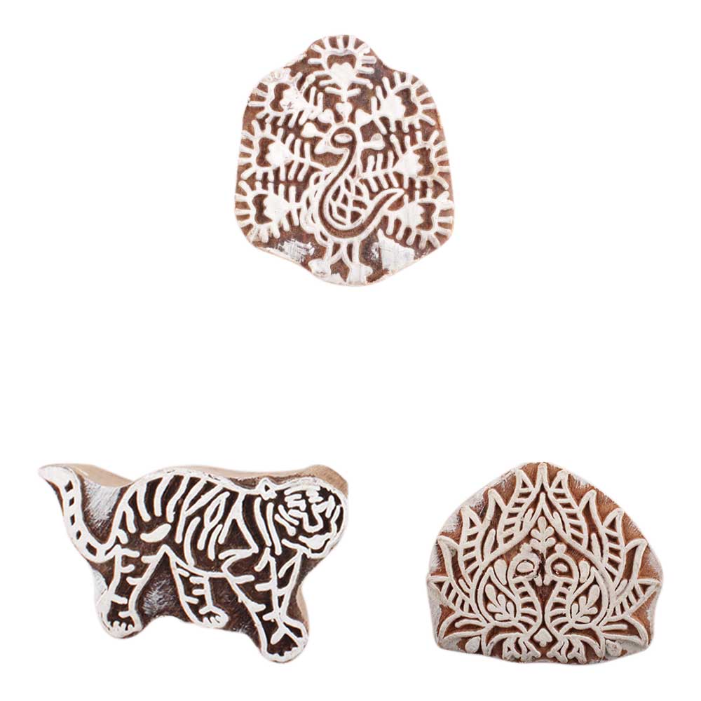 Set of 3 Piece New Mix Wooden Printing Block. Ideal for use on Fabric, Paper, Canvas, etc. These Blocks can be use to Print with Oil Colors, Fabric Colors, Water Colors, Acrylic Colors and Vegetable Colors.
