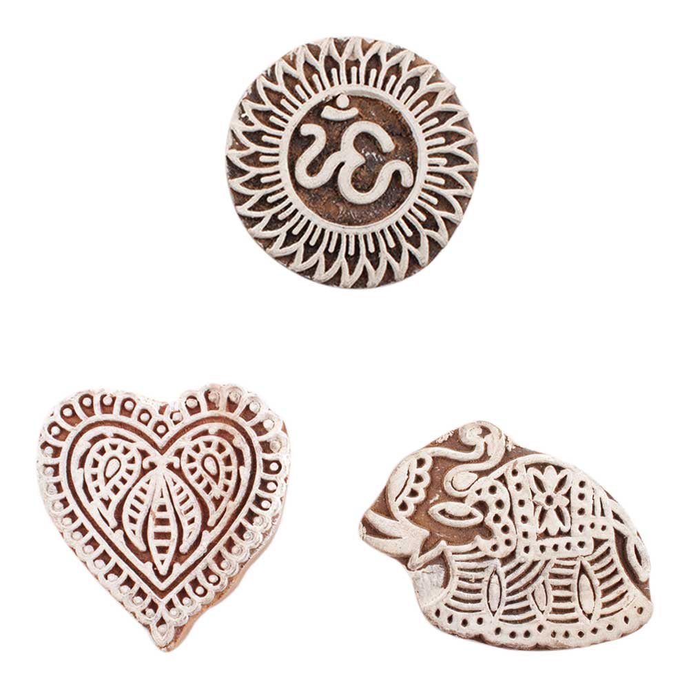 Set of 3 Piece New Mix Wooden Printing Block. Ideal for use on Fabric, Paper, Canvas, etc. These Blocks can be use to Print with Oil Colors, Fabric Colors, Water Colors, Acrylic Colors and Vegetable Colors.