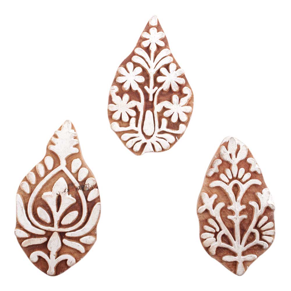 Set of 3 Piece New Mix Wooden Printing Block. Ideal for use on Fabric, Paper, Canvas, etc. These Blocks can be use to Print with Oil Colors, Fabric Colors, Water Colors, Acrylic Colors and Vegetable Colors.