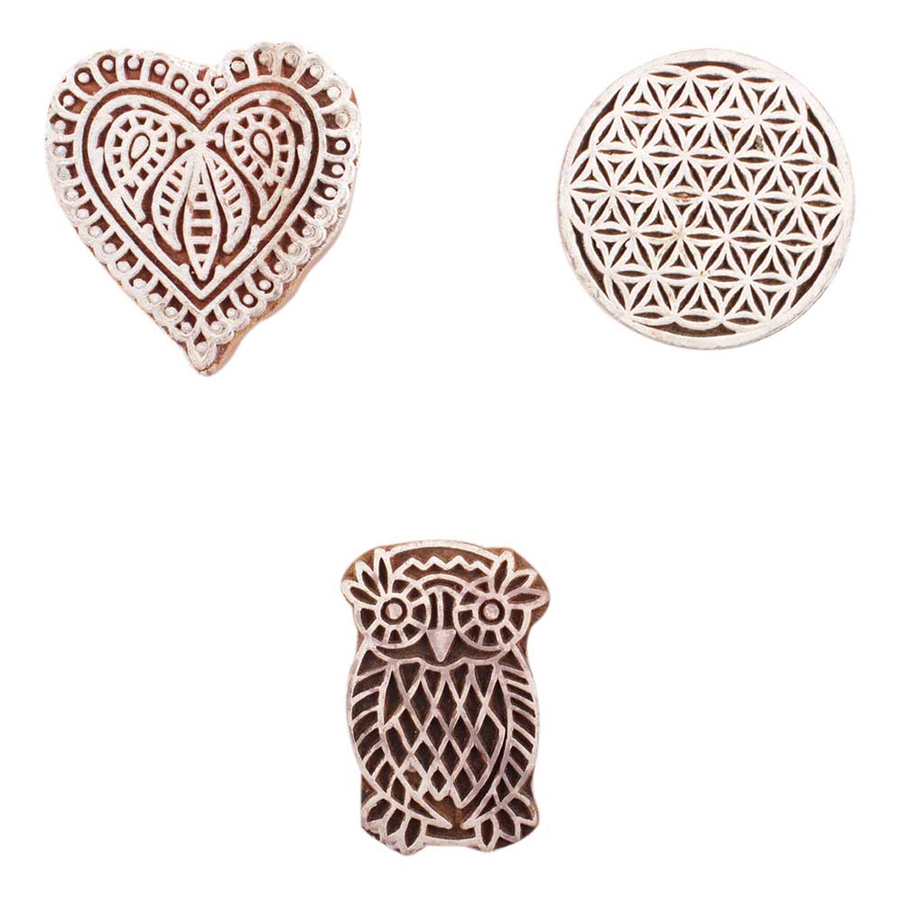 Set of 3 Piece New Mix Wooden Printing Block. Ideal for use on Fabric, Paper, Canvas, etc. These Blocks can be use to Print with Oil Colors, Fabric Colors, Water Colors, Acrylic Colors and Vegetable Colors.