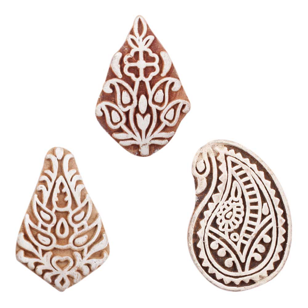 Set of 3 Piece New Mix Wooden Printing Block. Ideal for use on Fabric, Paper, Canvas, etc. These Blocks can be use to Print with Oil Colors, Fabric Colors, Water Colors, Acrylic Colors and Vegetable Colors.