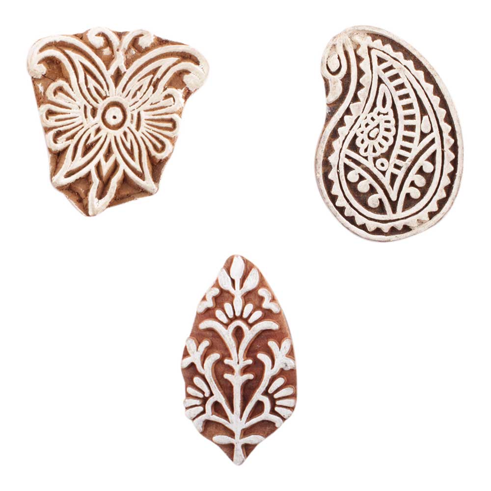 Set of 3 Piece New Mix Wooden Printing Block. Ideal for use on Fabric, Paper, Canvas, etc. These Blocks can be use to Print with Oil Colors, Fabric Colors, Water Colors, Acrylic Colors and Vegetable Colors.
