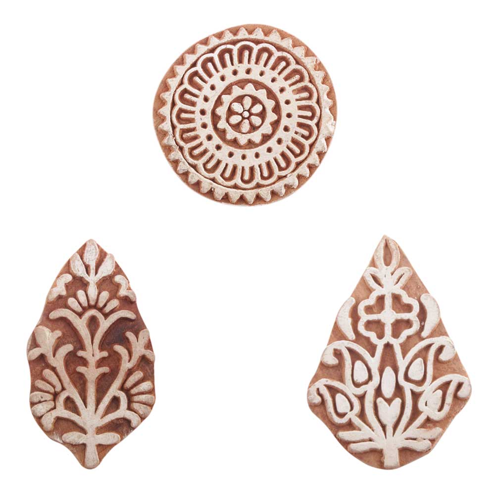Set of 3 Piece New Mix Wooden Printing Blocks. Ideal for use on Fabric, Paper, Canvas, etc. These Blocks can be use to Print with Oil Colors, Fabric Colors, Water Colors, Acrylic Colors and Vegetable Colors.