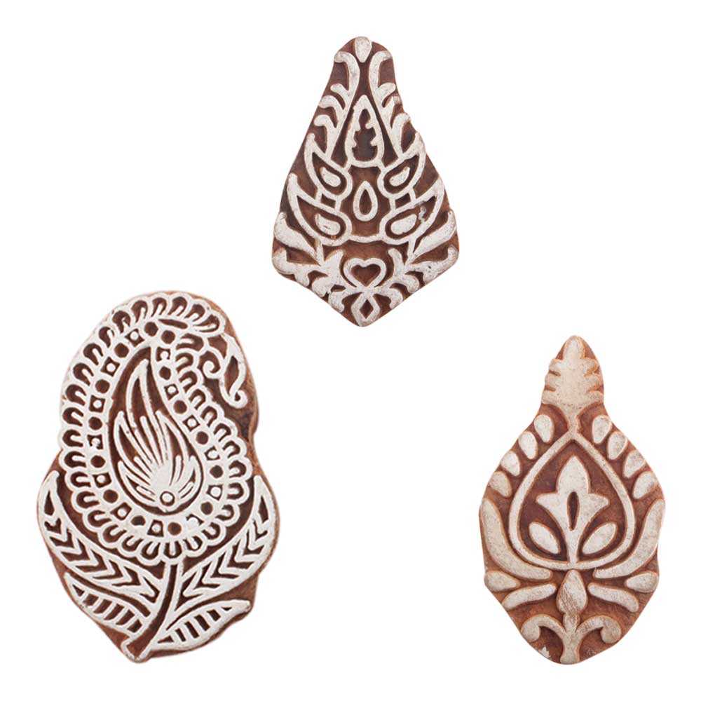 Set of 3 Piece New Mix Wooden Printing Blocks. Ideal for use on Fabric, Paper, Canvas, etc. These Blocks can be use to Print with Oil Colors, Fabric Colors, Water Colors, Acrylic Colors and Vegetable Colors.