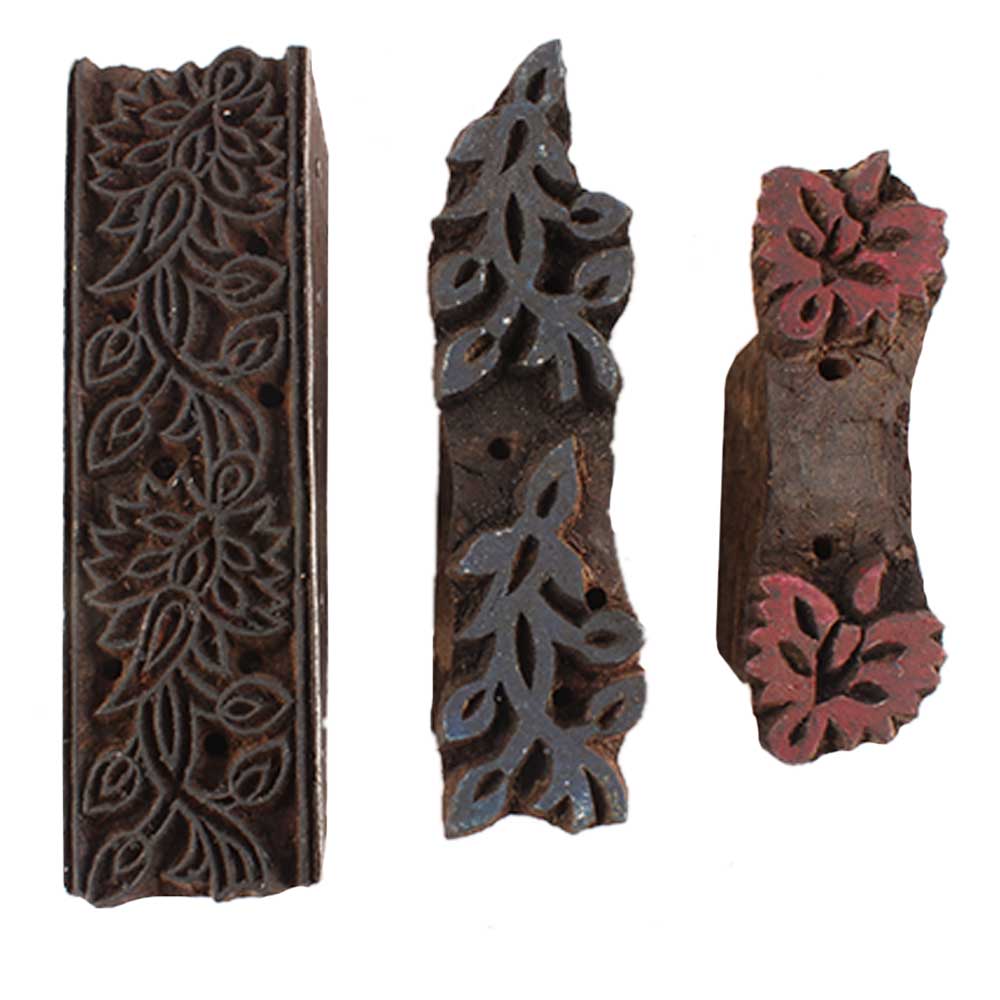 Set of 3 Piece New Mix Wooden Printing Blocks. Ideal for use on Fabric, Paper, Canvas, etc. These Blocks can be use to Print with Oil Colors, Fabric Colors, Water Colors, Acrylic Colors and Vegetable Colors.