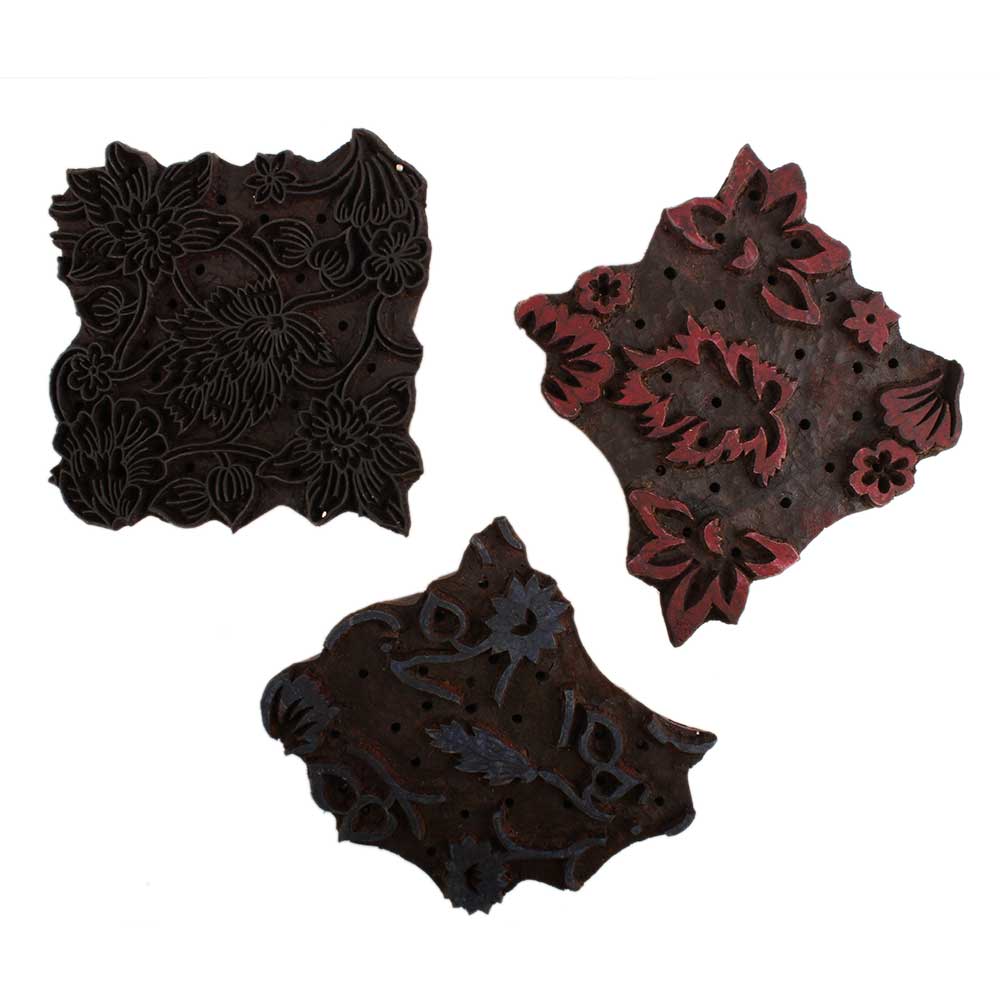 Set of 3 Piece New Mix Wooden Printing Block. Ideal for Using on Fabric, Paper, Canvas, etc. These Blocks can be use to Print with Oil Colors, Fabric Colors, Water Colors, Acrylic Colors and Vegetable Colors.