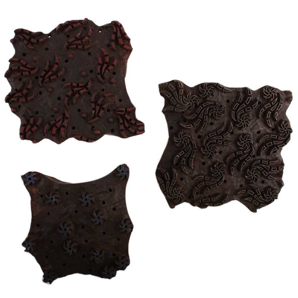 Set of 3 Piece New Mix Wooden Printing Block. Ideal for Using on Fabric, Paper, Canvas, etc. These Blocks can be use to Print with Oil Colors, Fabric Colors, Water Colors, Acrylic Colors and Vegetable Colors.