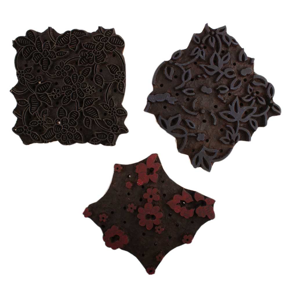 Set of 3 Piece New Mix Wooden Printing Block. Ideal for Using on Fabric, Paper, Canvas, etc. These Blocks can be use to Print with Oil Colors, Fabric Colors, Water Colors, Acrylic Colors and Vegetable Colors.