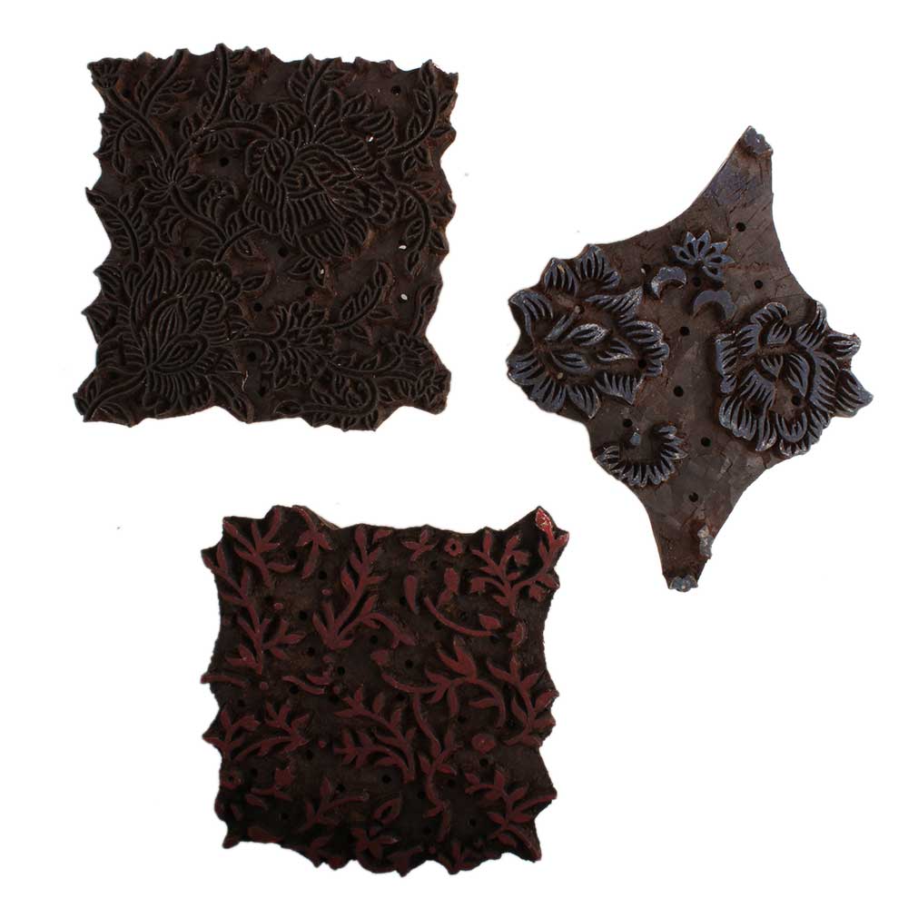 Set of 3 Piece New Mix Wooden Printing Block. Ideal for Using on Fabric, Paper, Canvas, etc. These Blocks can be use to Print with Oil Colors, Fabric Colors, Water Colors, Acrylic Colors and Vegetable Colors.