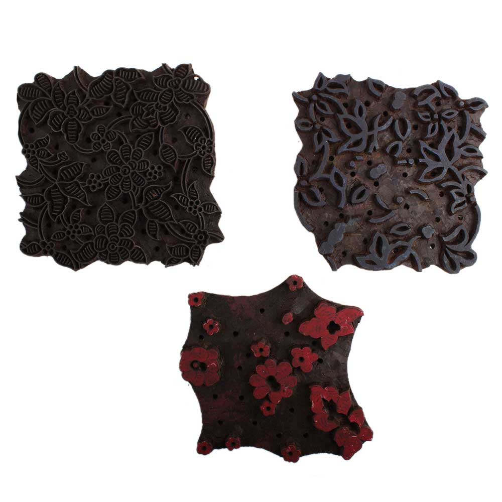 Set of 3 Piece New Mix Wooden Printing Block. Ideal for Using on Fabric, Paper, Canvas, etc. These Blocks can be use to Print with Oil Colors, Fabric Colors, Water Colors, Acrylic Colors and Vegetable Colors.