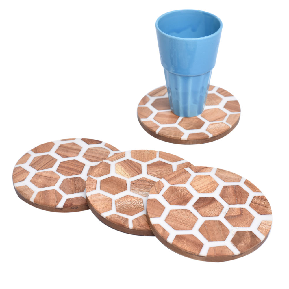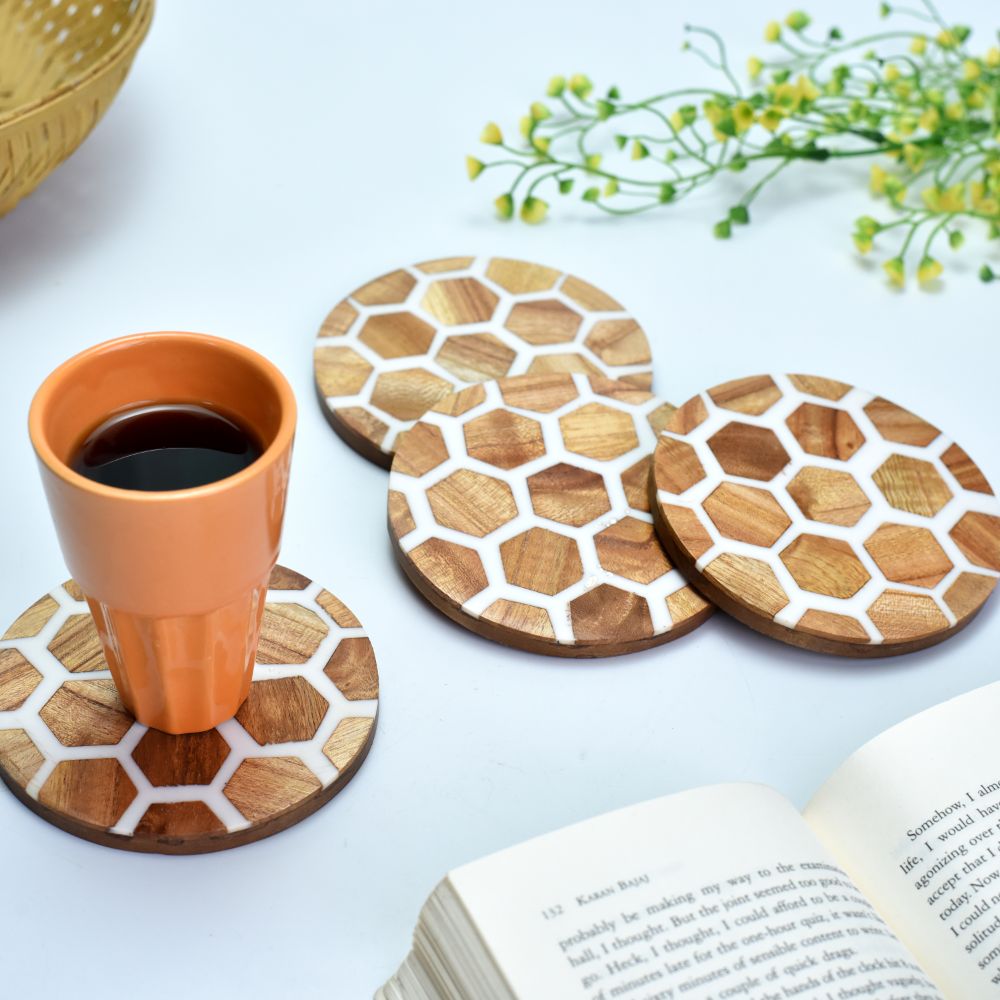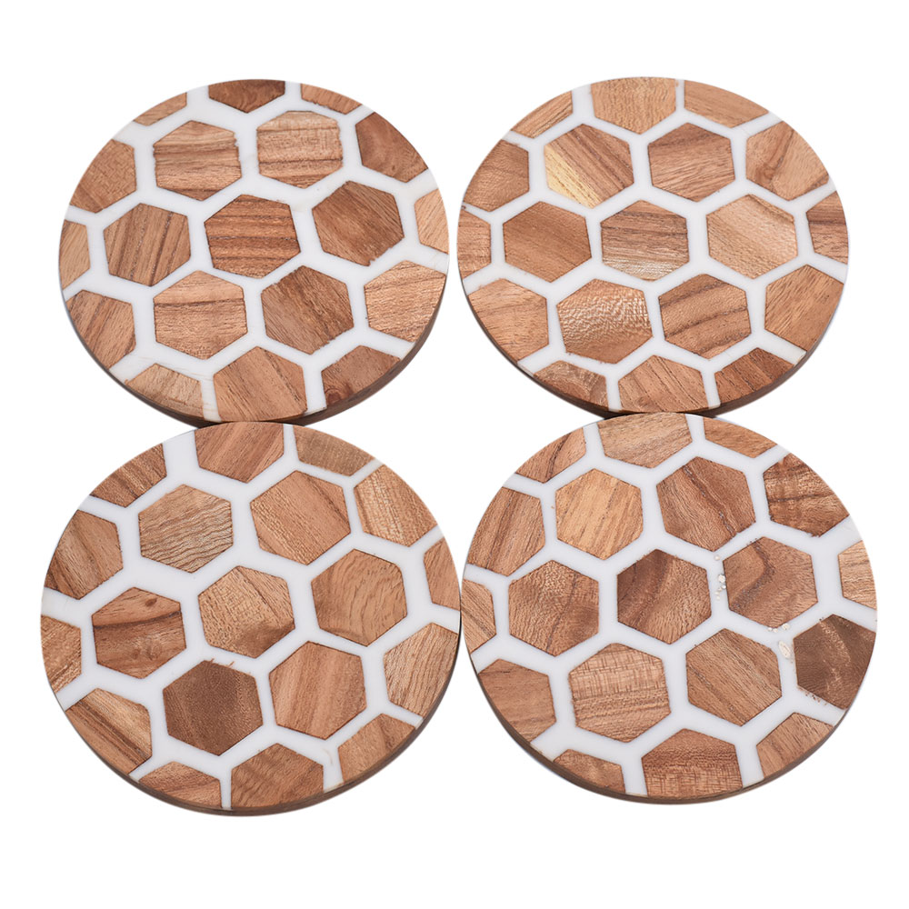Your family and friends will wonder if these are drink coasters or handmade works of art. Made of wood and resin  evoking the sweet texture of a honeycomb. Whether you're a champagne girl, a beer man or women, or a toddler with a sippy cup, this  versatile and generously sized design of wooden and resin coasters work with most drinkware shapes and sizes. A great housewarming or hostess gift, as well as for wedding showers and birthdays.