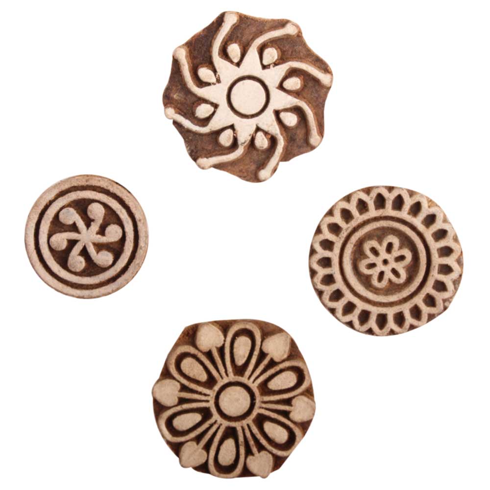 Set of 4 Piece New Mix Wooden Printing Block. Ideal for use on Fabric, Paper, Canvas, etc. These Blocks can be use to Print with Oil Colors, Fabric Colors, Water Colors, Acrylic Colors and Vegetable Colors.