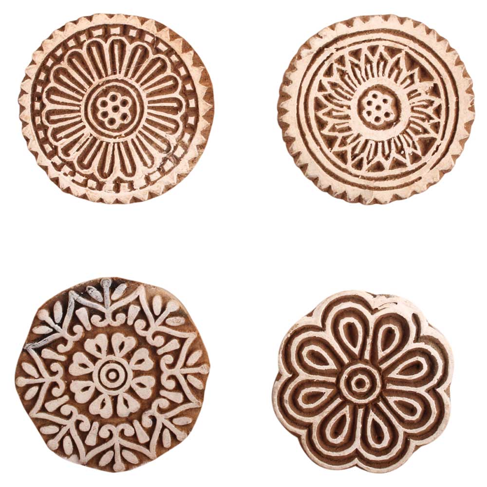 Set of 4 Piece New Mix Wooden Printing Block. Ideal for use on Fabric, Paper, Canvas, etc. These Blocks can be use to Print with Oil Colors, Fabric Colors, Water Colors, Acrylic Colors and Vegetable Colors.
