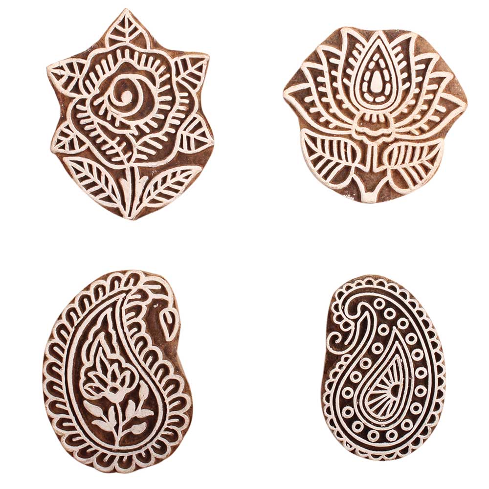 Set of 4 Piece New Mix Wooden Printing Block. Ideal for use on Fabric, Paper, Canvas, etc. These Blocks can be use to Print with Oil Colors, Fabric Colors, Water Colors, Acrylic Colors and Vegetable Colors.