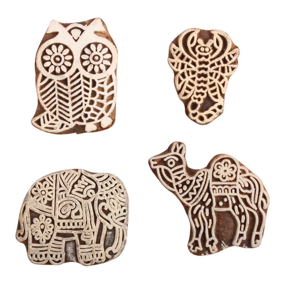 Set of 4 Piece New Mix Wooden Printing Block. Ideal for use on Fabric, Paper, Canvas, etc. These Blocks can be use to Print with Oil Colors, Fabric Colors, Water Colors, Acrylic Colors and Vegetable Colors.