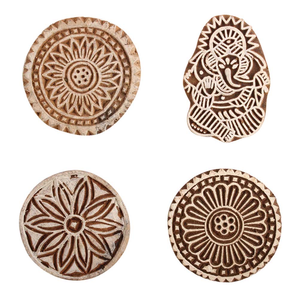 Set of 4 Piece New Mix Wooden Printing Block. Ideal for use on Fabric, Paper, Canvas, etc. These Blocks can be use to Print with Oil Colors, Fabric Colors, Water Colors, Acrylic Colors and Vegetable Colors.