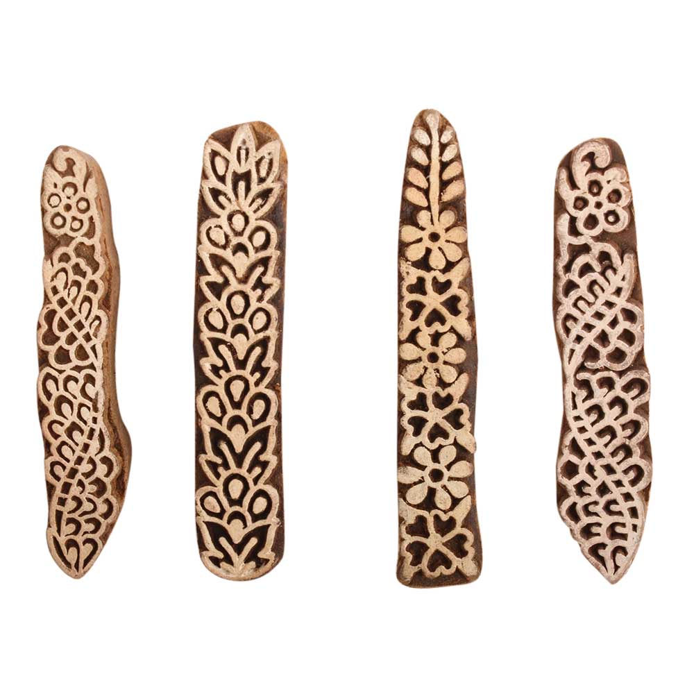 Set of 4 Piece New Mix Wooden Printing Block. Ideal for use on Fabric, Paper, Canvas, etc. These Blocks can be use to Print with Oil Colors, Fabric Colors, Water Colors, Acrylic Colors and Vegetable Colors.